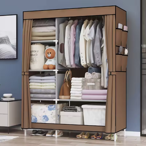 - Almacenamiento multifuncional: el clóset consta de 5 estantes pequeños y 1 estantes grandes para clasificar y apilar varias prendas, bufandas, camisas, pantalones, etc. Además, hay una zona para colgar faldas largas, vestidos, trajes, abrigos de vaquero, etc.