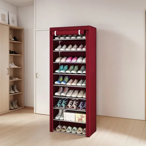 - Estructura estable: hecha con tubos de metal y conectores plásticos; cada estante soporta hasta 3 kg, apto para todo tipo de calzado.